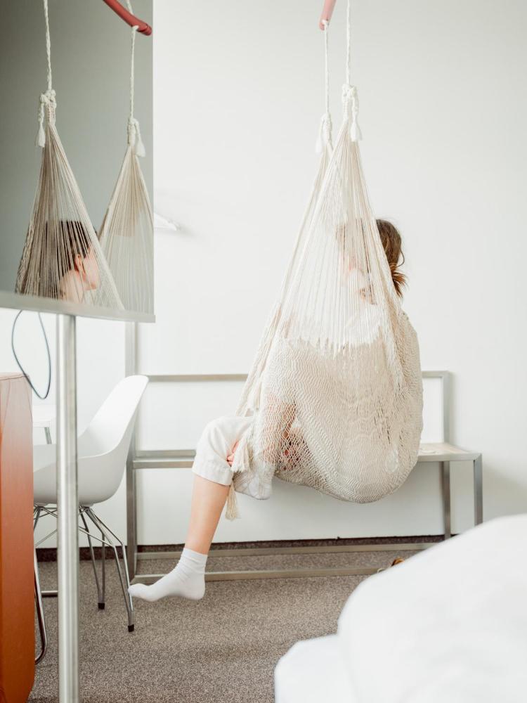 Browse images of our industrial-chic interiors, stylishly minimalist rooms, and the iconic Airstream trailer—a guest favorite for its one-of-a-kind flair. Take a look at the panoramic views from our upper-floor rooms and the details that make each space distinctive, from hanging hammocks to exposed concrete textures.
